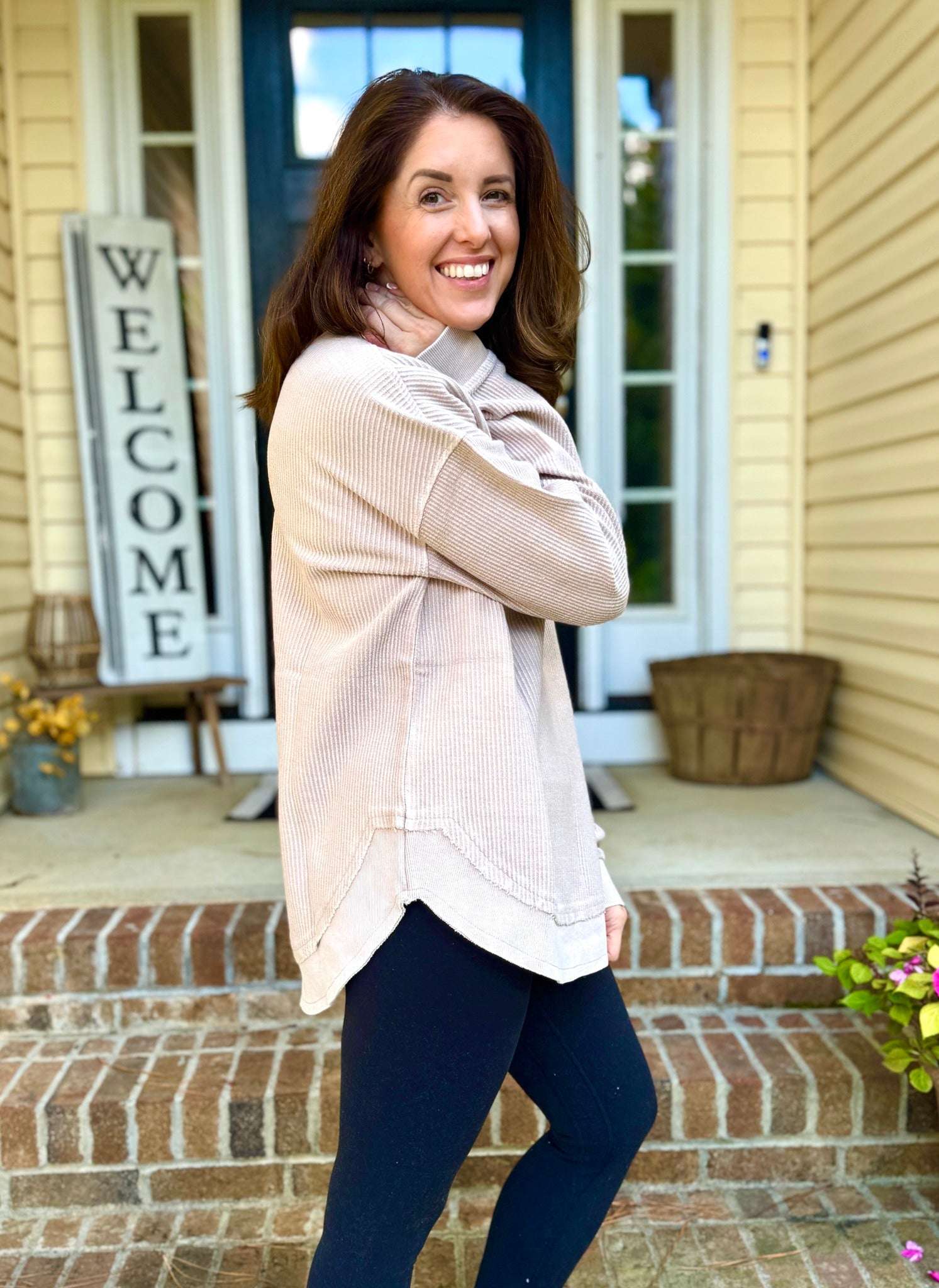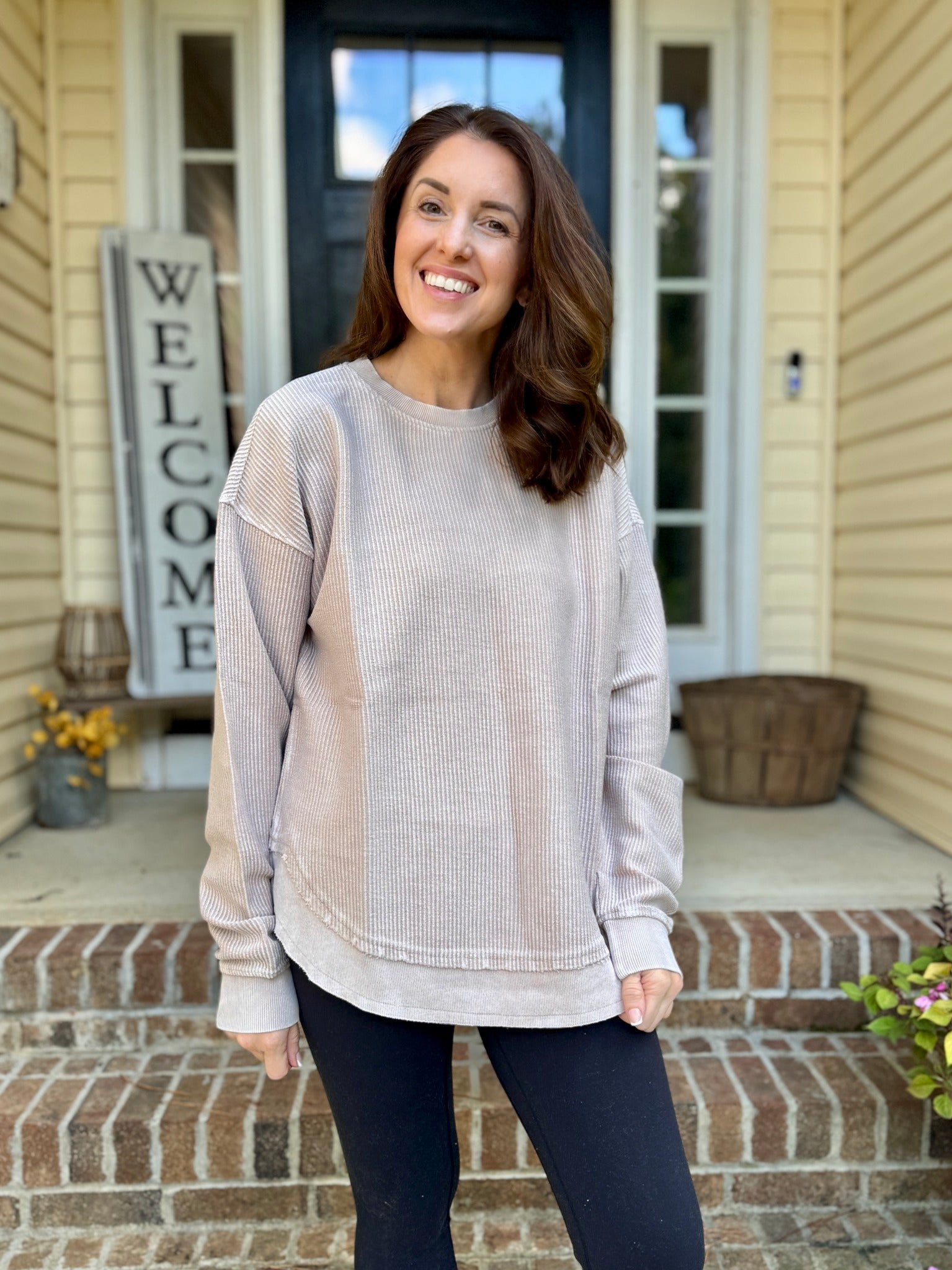 MUSHROOM ROUNDED BOTTOM Cozy Cord Crew Sweatshirt