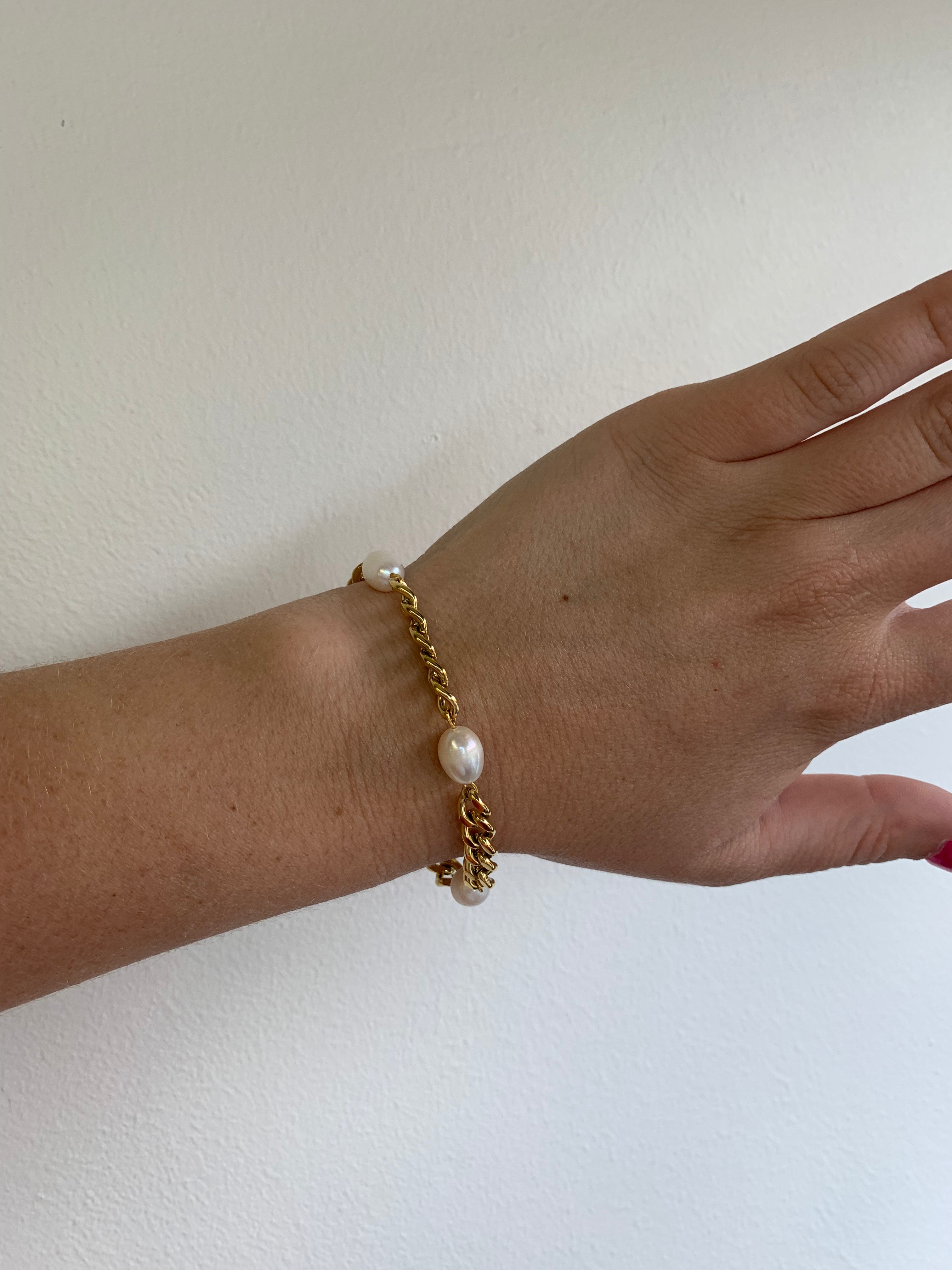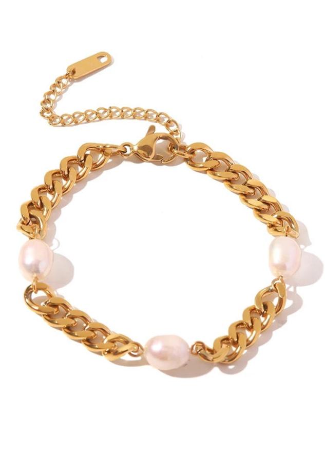 Pearl 18k Gold Plated Chunky Bracelet